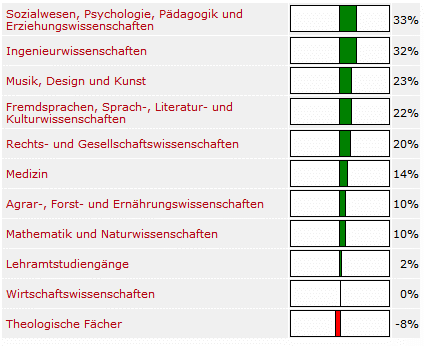 Also, ich soll Lehrer werden… Und zwar zu 72%. Theologie hat bei mir erwartungsgemäß positiv abgeschlossen. Letzter Platz: Medizin.