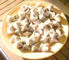 Nachtrag: hier noch das Bild von den selbstgemachten Nüdelchen im rohen Zustand. Je dünner der Nudelteig und je kleiner die Täschchen, desto besser. Übrigens schmecken sie am nächsten Tag mit Zwiebeln, Tomaten, Knoblauch und Oliven in Olivenöl angebraten fast genauso lecker.