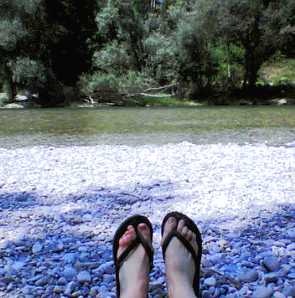 Also ging es auf mein gutes altes Peugeot, durch den größten Stadtpark der Welt an die Isar, wo man Kiesbänke selbst bei diesem Wetter fast für sich allein hat (wenn man an die richtige Stelle fährt) und dazu ein etwa 18° kaltes Flüßchen in Quasi-Trinkwasserqualität. Und, wie der Titel schon andeutet: Fische hats hier auch, aber (launische) Forellen und keine Bauch-nach-Oben-Karpfen wie in anderen Gewässern. Außenalster, du kannst sowas von einpacken!!!