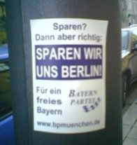 Schaut Euch ruhig mal auf der Seiten dieser urig-separatistischen Partei um; sowohl Landesverband als auch die Münchner betreiben Blogs. Laptop und Lederhosen sind kein schwarzes Monopol, scheint mir. Besonders interessant aber wie immer das Forum, wo sich "Oberbayer85", "blos a waidla" (sinngemäß: nur ein Bewohner des Bayerischen Waldes) und "NRW ist viel besser" die Schädel einschlagen oder sich über die Diskriminierung der bayerischen Ethnie bzw. Sprachform ereifern. Da legst di nieder! (sinngemäß: Gib dir das mal!)