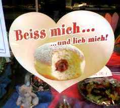 Ich habe das Verfahren für den "Krapfentest" verändert und mache jetzt einen Dauertest bei der Conditorei Hölzl (Türken Ecke Schelling), um die gleichbleibend gute Qualität des dort hergestellten Schmalzgebäcks sicherzustellen. Nach einer Woche erste Resultate: die Qualität der Hölzl-Krapfen schwankt auf der nach oben offenen Fingerschleck-Skala ganz beträchtlich. Das, glaube ich, liegt daran, ob der Krapfen ein paar Sekunden zu lang im Fett lag oder letzteres ein Paar grad zu heiß oder kalt war: manchmal (diese Woche 1x) schmeckts fettig, sonst lecker knusprig bis zart-weich. Die Marmelade (habe nur Aprikose probiert) ist dagegen immer gleich gut. Beschließe jedoch, die Variabilität als eine gelungene Metapher auf das Leben aufzufassen und bleibe nach wie vor bei Hölzl. Schon wegen der Werbung!