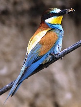 – Bienenfresser (Merops apiaster, siehe Abb.), ein größerer Trupp lebt in den Hügeln und durchquert mehrmals am Tag das Tal.