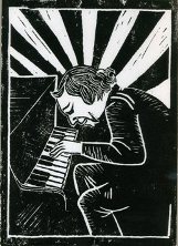Im Hause Cohu gibt es eine neue technische Errungenschaft, und zwar ein Epson V10 Bildeinlesegerät, neudeutsch Scanner. Hier ein kurzer Bild-Hochlade-Test. Klicken auf das Bild sollte im Idealfall zu einer größeren Version führen. Ich präsentiere: Grigory Sokolov in einem Linolschnitt von Cohu höchstselbst! Das Bild ist eine freundliche Leihgabe der Sammlung “IT”.