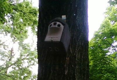 [In Wirklichkeit handelt es sich dabei natürlich um eine besonders luxuriöse Vogelresidenz, das Dreilochprinzip sorgt dabei für die nicht nur bei menschlichen Mietern beliebte Helligkeit. Kühler Altbau, 15 qcm, provisionsfrei, in bester Lage im alten Nordfriedhof und ab sofort zu vermieten! Untervermietung: nur an Fledermäuse.]