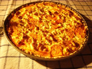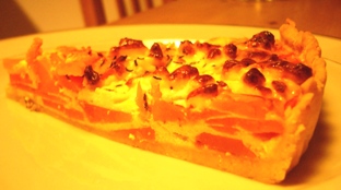 Einer der zahlreichen Vorteile des Frühherbstes ist bekanntermaßen der Cucurbita maxima convar. Hubbardiana. Die Begeisterung, die diese Kürbis-Modesorte bei mir auslöst, ist leider invers proportional zu der Anzahl an Zubereitungsweisen, die mir dazu einfallen (Suppe, Suppe, und Suppe). Vorgestern allerdings schlug ich der orangenen Eintönigkeit ein Schnippchen und bereitete eine Kürbistarte (angelehnt an dieses Rezept) zu: einfach einen salzigen Mürbteigboden, den ich nicht vorbacke, dann den Kürbis in dünne Scheiben/Streifen schneiden und schließlich einen Guss aus Sahne, Créme fraîche, Eiern und Feta darüber. Würzen mit Pfeffer, Meersalz, frisch geriebener Muskatnuss und Thymian.