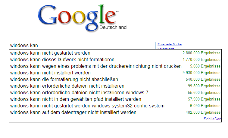 Mit dieser altbekannten Googlefunktion kann man viel Spaß haben – manchmal liegt Autocomplete aber ziemlich richtig: