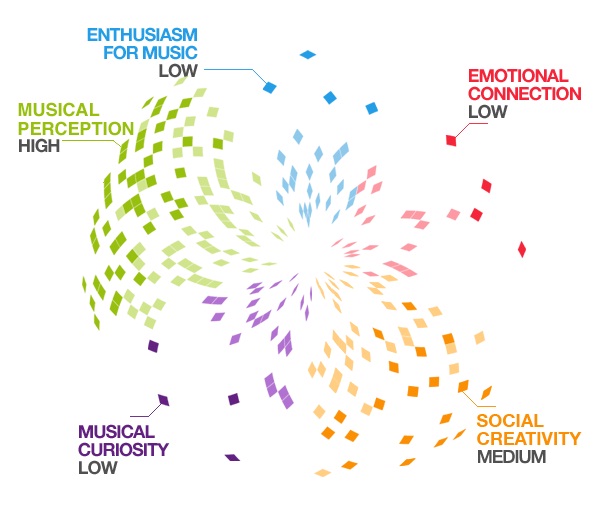 Now for the bad part of the test: my “emotional connection”, “enthusiasm” and “curiosity” scores are dismal – 1%, 1% and 2%, respectively. Doesn’t that sound terrible? I have to admit it’s true, I just don’t like music that much. I love my Christmas present though.
