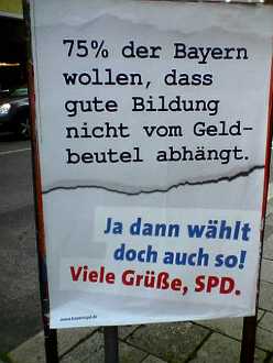 Nur mal so als Stimmungsbild aus dem bayerischen Wahlkampf für die Nordlichter. Drunter steht noch “Enteignung von Banken und Großkonzernen!” und ein paar ähnliche Vorschläge.